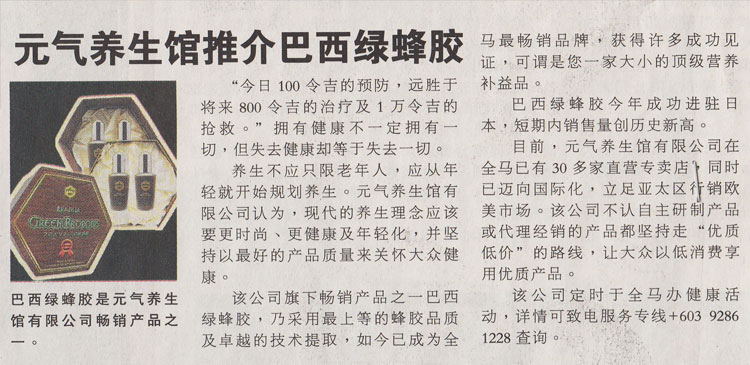 南洋商報 2012年07月13日- 巴西綠蜂膠特寫